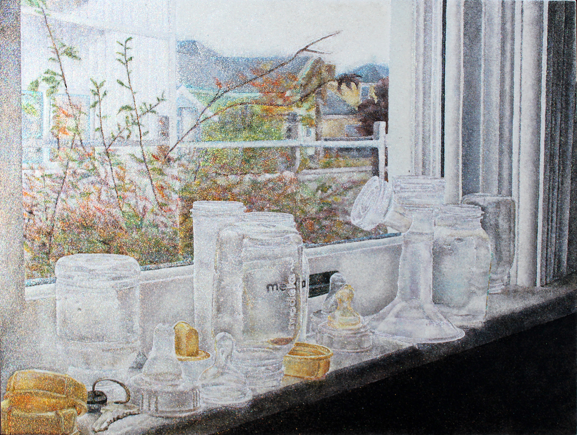 Latching, 24” X 32”, glitter and glue on panel. (Only glitter piece completed since becoming a mother.)