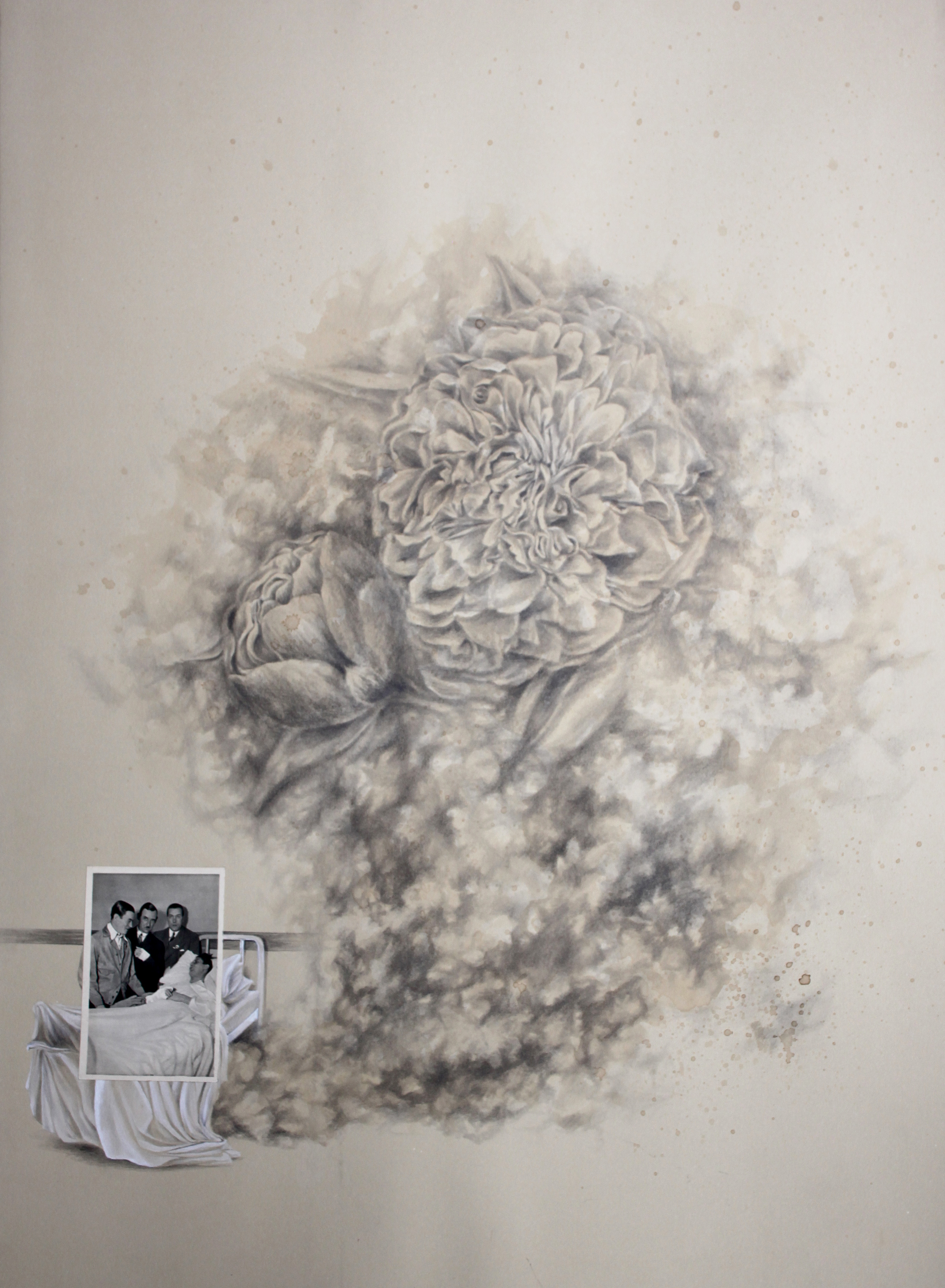 I haven’t gotten anything done except my portraits in the last couple of months. I think with the holidays approaching my orders just took off! I do have a lot of ideas swirling around in my head. Just before this project I was working on some drawings with collaged elements. I have a strange collection of little vintage photo cards and these drawings expand beyond the edges of the photo to provide a more fantastical and complex narrative than the photo itself offers.