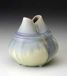 Karen Karnes’s pottery has resonated with me since I was first introduced to it as an undergraduate student. I saw many pieces of hers at a show of her work in Stowe, Vermont in the early 90’s. That was a significant experience for me. Before then I had primarily understood my pots as being functionally-based. Seeing Karen’s large split footed forms and winged vessels was extraordinary; their mass, strength and soft femininity resonated with me. These forms were representational of vessels but explored form in a much more sculptural way than I was familiar with. The fact that these pots were also created by a woman made them all the more vital to me.