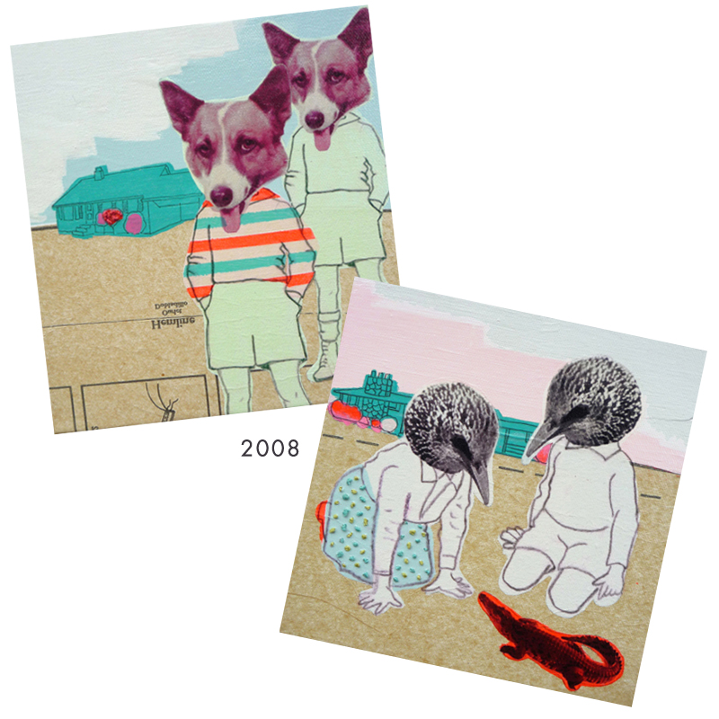 First off, your collages are simple and fantastic. I enjoy the empty space around the paint and imagery that gives the compositions room to breathe and the viewer time to think.