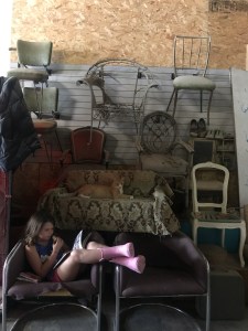 I had decided to make work full time just before I became pregnant so I was only teaching a few days a week. After I had Olivia in October of 2009, I took a short break from teaching but had a solo show scheduled for February 2010 at the Philadelphia Art Alliance (!) She went to the studio with me. I made work at home. Her dad and I both have parents that live close by so she would spend a few hours with each grandmom two days a week. But mostly she did what I did. I remember bringing furniture into and out of the Art Alliance with a baby strapped to me. She had a “baby jail” (playpen) in the studio and lots of toys there. I am lucky because even when I started my business, The Philadelphia Sculpture Gym, she could be there. She has grown up in a shop and studio and knows more about tools than most 8 years olds.