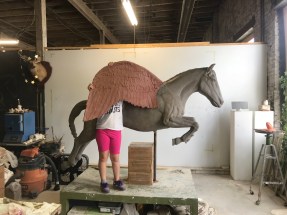I have always been stubborn when it comes to art making. I can and will make art in less than ideal situations and have suffered various things such as extreme temperatures in my studios, sharing studios with a car garage, or casting rabbits in my bathtub. I have had people tell me that I can’t do this and I’ll never be able to do that. When I was pregnant more than one person said “There goes your art career”. I have very much enjoyed proving them wrong. I think being ready for anything made being an artist and a mother mesh well. Olivia just adapted to whatever we were doing that day. There is always a spot for her in my studio and so she’s grown up feeling very comfortable there. The least normal things in the world seem very normal to her and I love that.